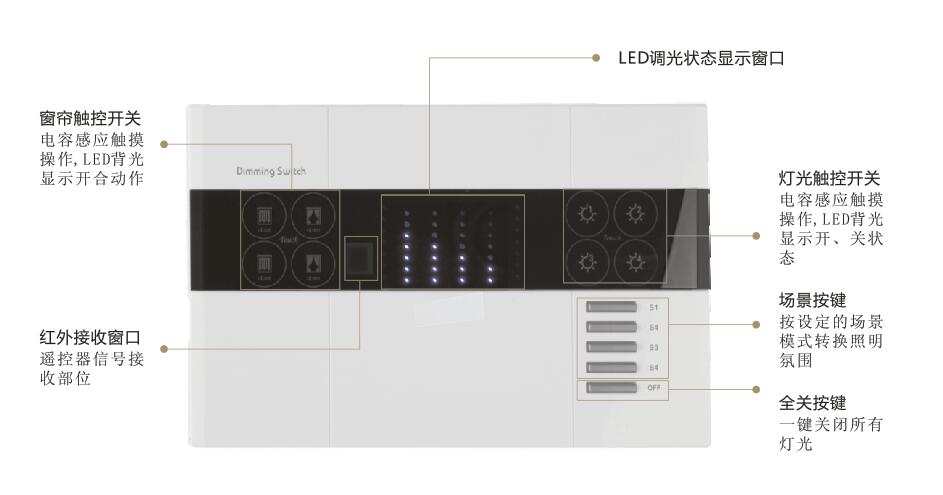 ● 时尚的设计,提升居住环境的品位 ● 综合调节照明控制功能 ● 多种照明场景轻松变幻空间氛围 ● 连接家庭网络,便捷扩展控制