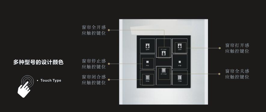 ● 新颖的墙面集成化设计提升居住环境品位 ● 感应式触控及模式控制,互锁继电器控制,兼顾安全性与可靠性 ● 本地区域性控制或通过家庭主机联动实现全局和远程控制 ● 接入家庭系统服务器实现多种扩展功能