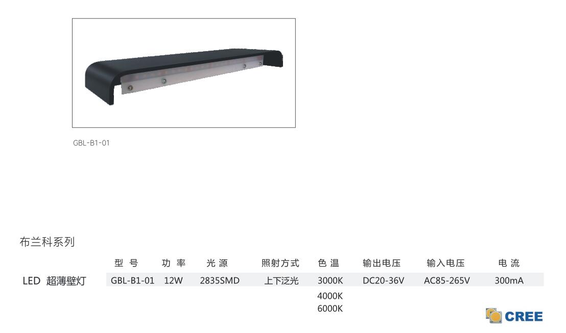 GBL-B1-01 12W 2835SMD 上下泛光 3000K/4000K/6000K DC20-36V AC85-265V 300mA