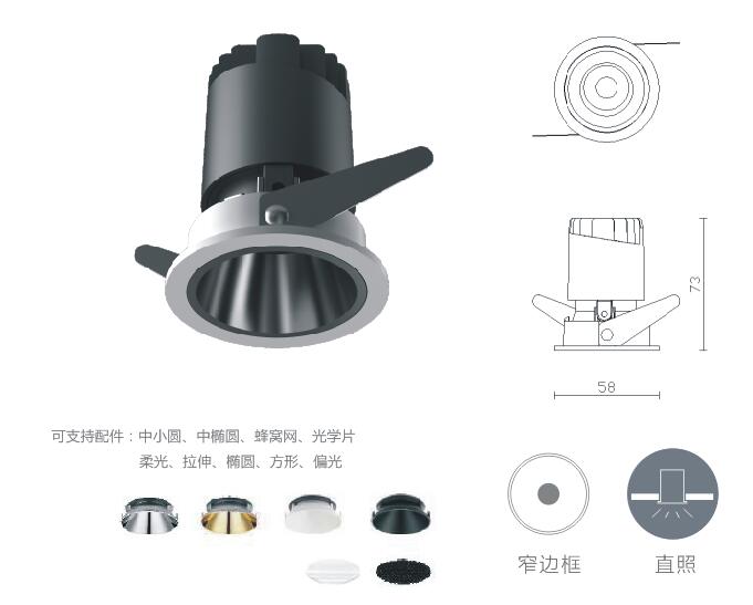 | GLX-HES0522 | 5W | CREE/CITIZEN | 3000/4000/6000K | 10°/24°/38° | Ra≥90 | Φ50mm | 嵌入式 |