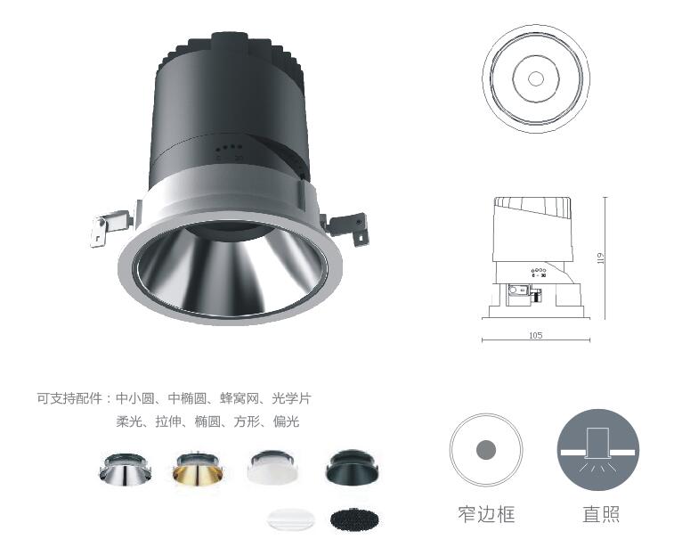 | GLX-HES2022 | 20W | CREE/CITIZEN | 3000/4000/6000K | 10°/24°/38° | Ra≥90 | Φ95mm | 嵌入式 |