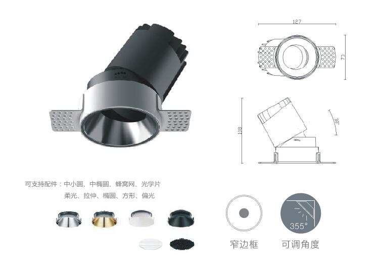 | GLX-HES1231 | 12W | CREE/CITIZEN | 3000/4000/6000K | 10°/24°/38° | Ra≥90 | Φ75mm | 嵌入式 |