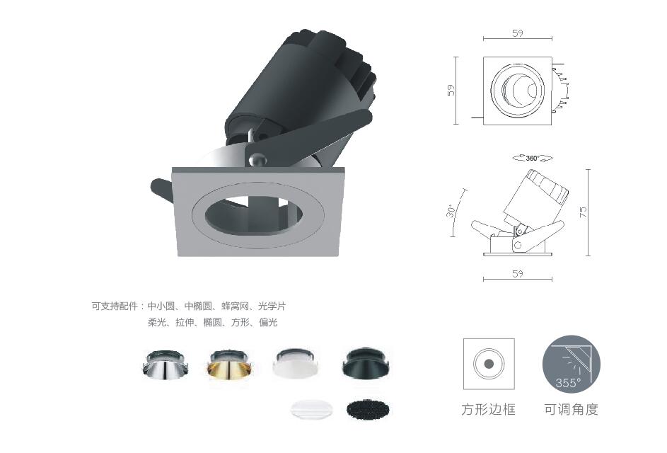 | GLX-HES0501 | 5W | CREE/CITIZEN | 3000/4000/6000K | 10°/24°/38° | Ra≥90 | Φ50mm | 嵌入式 |