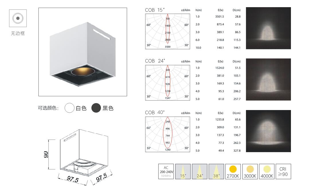 | GLT-HM-M1001 | 1*10W | CREE/CITIZEN | 2700-5500K | 15°/24°/40° | Ra≥90 | 95*95*90mm | 明装式 |