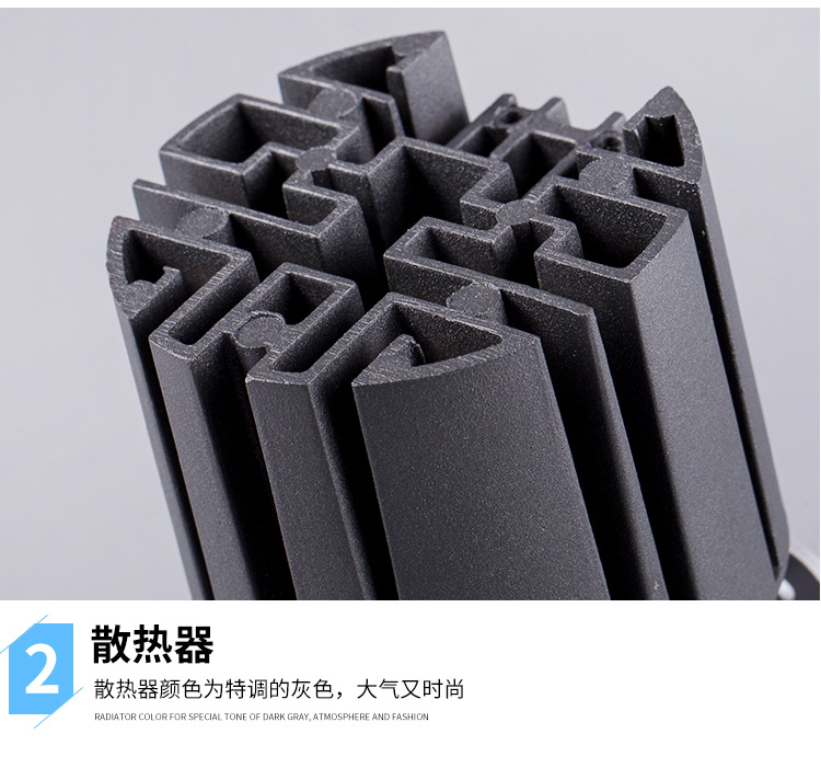灯体外观采用细砂喷粉工艺,手感细腻有光泽,砂白面环搭配砂灰散热器;